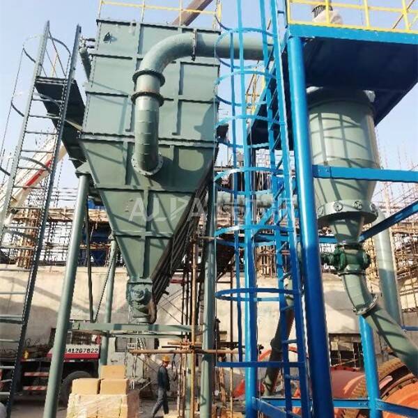 分級(jí)機(jī)與旋風(fēng)分離器、除塵器、引風(fēng)機(jī)組成一套分級(jí)系統(tǒng)。物料在風(fēng)機(jī)抽力作用下由分級(jí)機(jī)下端入料口隨上升氣流高速運(yùn)動(dòng)至分級(jí)區(qū),在高速旋轉(zhuǎn)的分級(jí)渦輪產(chǎn)生的強(qiáng)大離心力作用下,使物料分離,符合粒徑要求的細(xì)顆粒通過(guò)分級(jí)輪葉片間隙進(jìn)入旋風(fēng)分離器或除塵器收集。粗顆粒夾帶部分細(xì)顆粒撞壁后速度消失,沿筒壁下降至二次風(fēng)口處,經(jīng)二次風(fēng)的強(qiáng)烈淘洗作用,使粗細(xì)顆粒分離,細(xì)顆粒上升至分級(jí)區(qū)二次分級(jí),粗顆粒下降至卸料口排出。