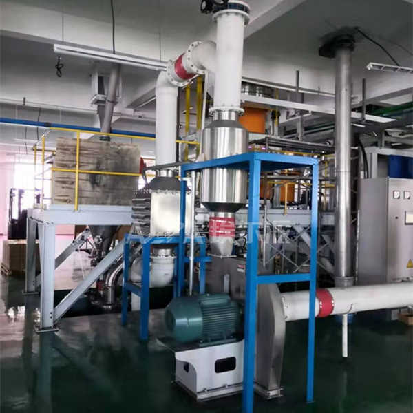 物料由加料系統(tǒng)均勻的送入粉碎室,受到高速旋轉(zhuǎn)的粉碎盤(pán)的強(qiáng)烈沖擊,同時(shí)受到離心力的作用,與粉碎齒圈發(fā)生碰撞,受到剪切、摩擦、碰撞等多種綜合力的作用,使物料粉碎,被粉碎的物料隨氣流運(yùn)動(dòng)到分級(jí)區(qū),通過(guò)變頻調(diào)節(jié)的分級(jí)輪,對(duì)粗細(xì)物料進(jìn)行分離,符合細(xì)度要求的產(chǎn)品隨氣流進(jìn)入旋風(fēng)收集器和除塵器收集,粗細(xì)料返回分級(jí)區(qū)二級(jí)粉碎。