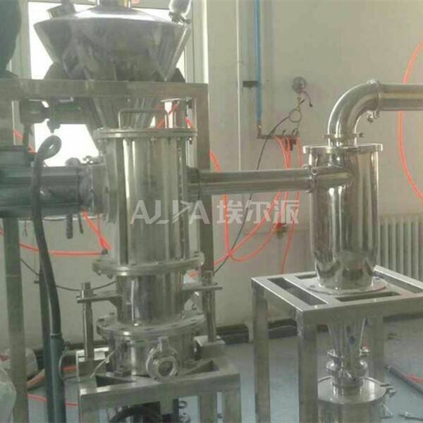 物料由加料系統(tǒng)均勻的送入粉碎室,受到高速旋轉(zhuǎn)的粉碎盤的強烈沖擊,同時受到離心力的作用,與粉碎齒圈發(fā)生碰撞,受到剪切、摩擦、碰撞等多種綜合力的作用,使物料粉碎,被粉碎的物料隨氣流運動到分級區(qū),通過變頻調(diào)節(jié)的分級輪,對粗細(xì)物料進(jìn)行分離,符合細(xì)度要求的產(chǎn)品隨氣流進(jìn)入旋風(fēng)收集器和除塵器收集,粗細(xì)料返回分級區(qū)二級粉碎。
