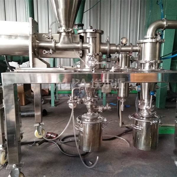埃爾派三合一實驗室粉碎分級機物料通過自動喂料系統(tǒng)對進入氣流粉碎機(機械粉碎機)的物料粉碎至合適粒度,通過高速旋轉的分級輪實現(xiàn)大小不同的粒度分離,合格的產(chǎn)品進入旋風收集器收集,粗顆粒返回粉碎區(qū)繼續(xù)粉碎。如果需要把物料單獨進行分級,組合氣流分級單元,通過變頻器調整葉輪轉速實現(xiàn)不同粒度的產(chǎn)品分級。